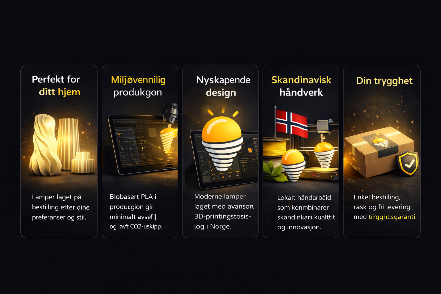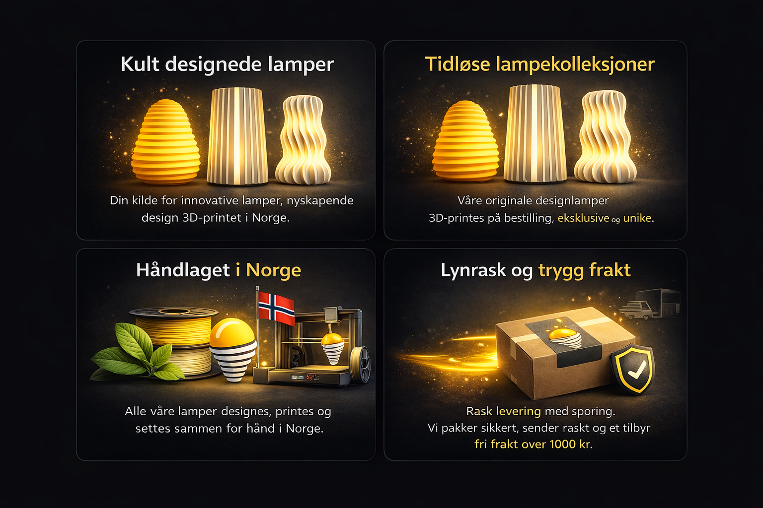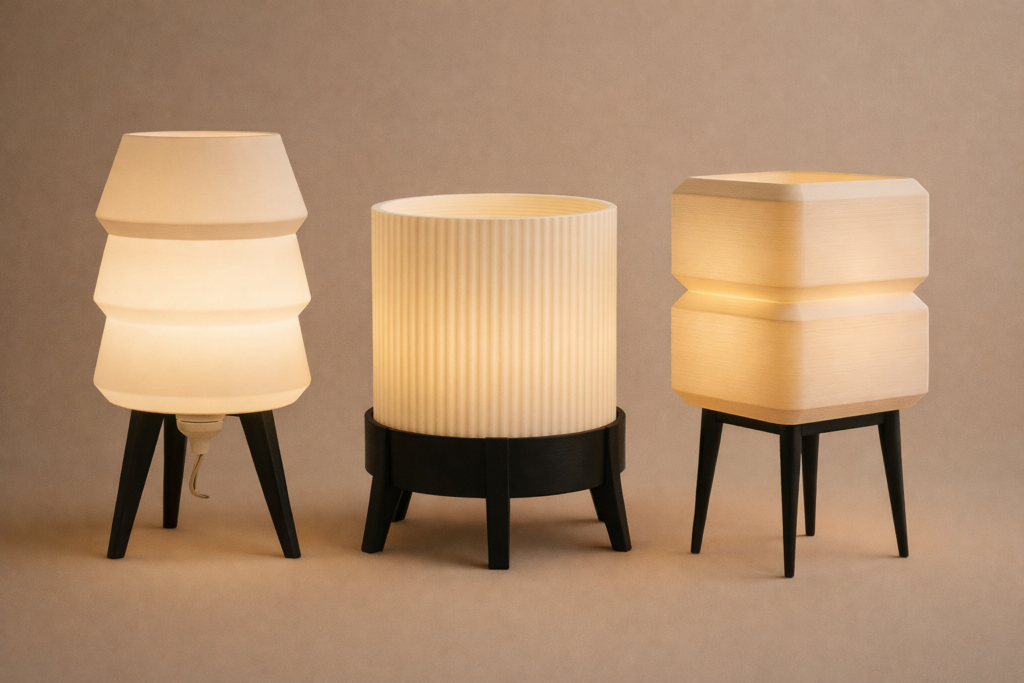 Håndlagde 3D-printede lamper og vaser laget i Norge, designet for å varme hjemmet ditt med mykt, elegant lys.