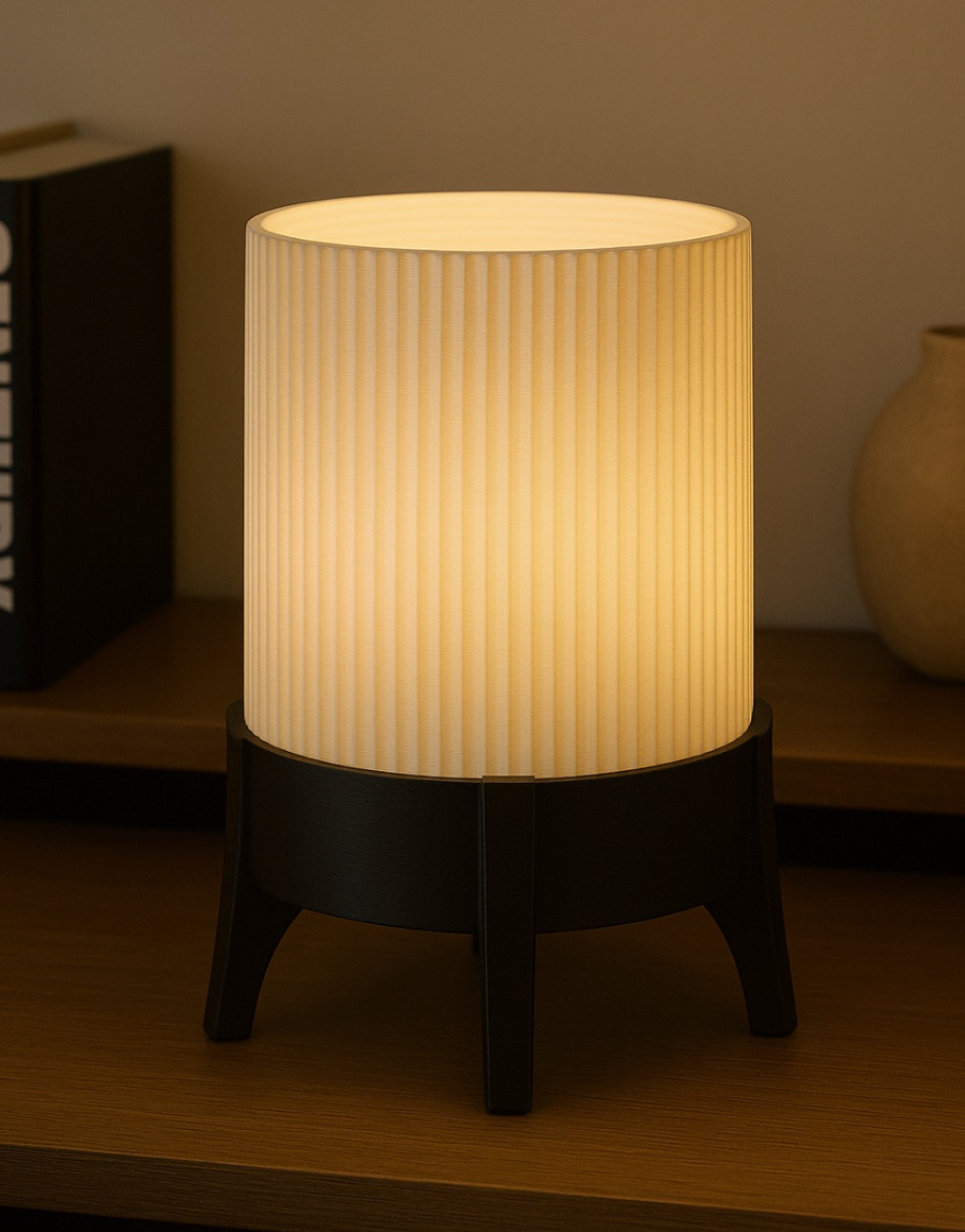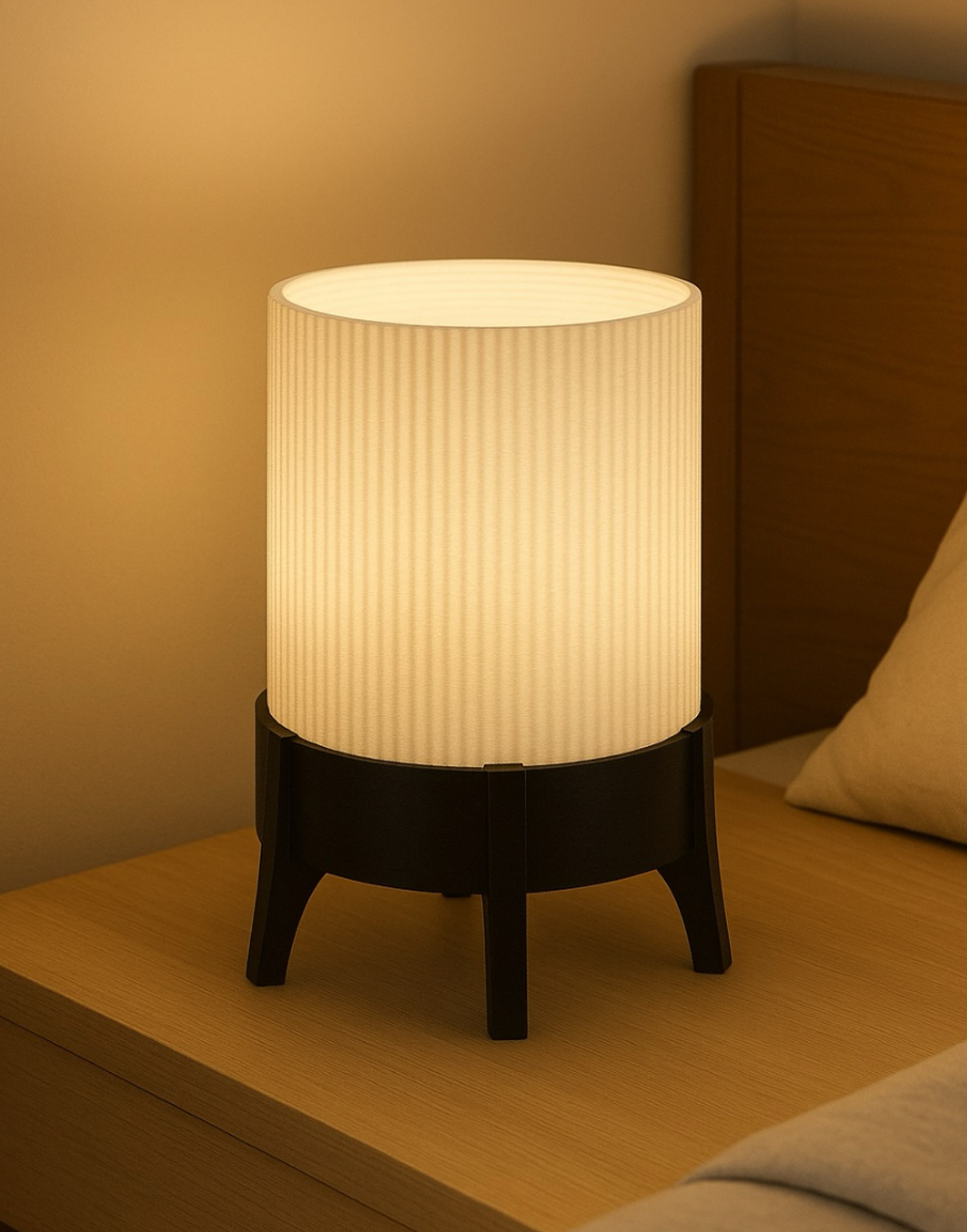 Materiale: plast (PLA+) Farge: Hvit skjerm, svart bein lyskilde: E27 sokkel (med pære) størrelse: høyde: 280, bredde: 170mm ledning: 3,5 lang med eurokontakt bruksområde: innendørs montering: hvis trengs (enkel montering)