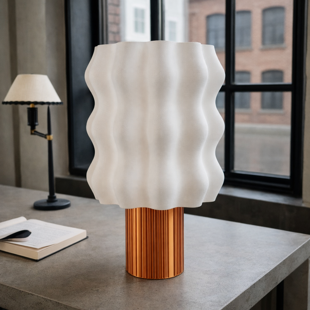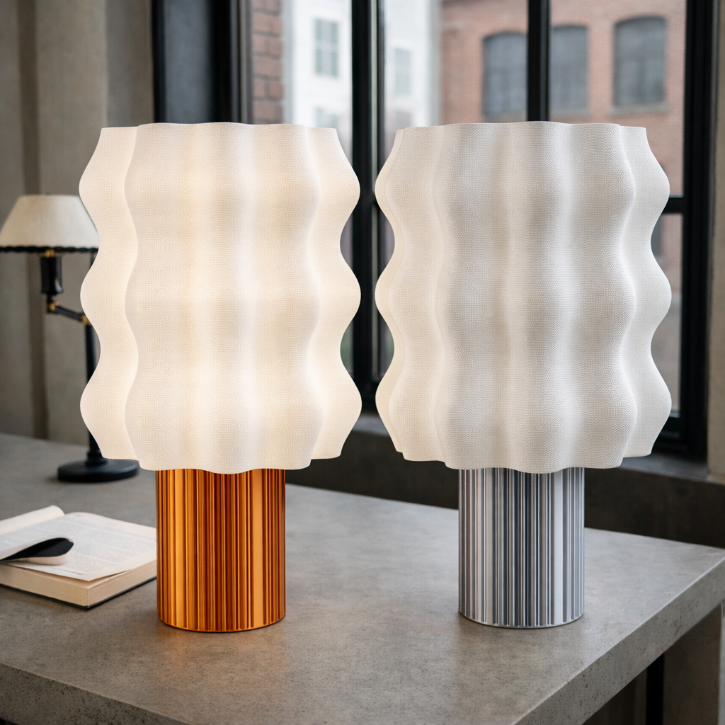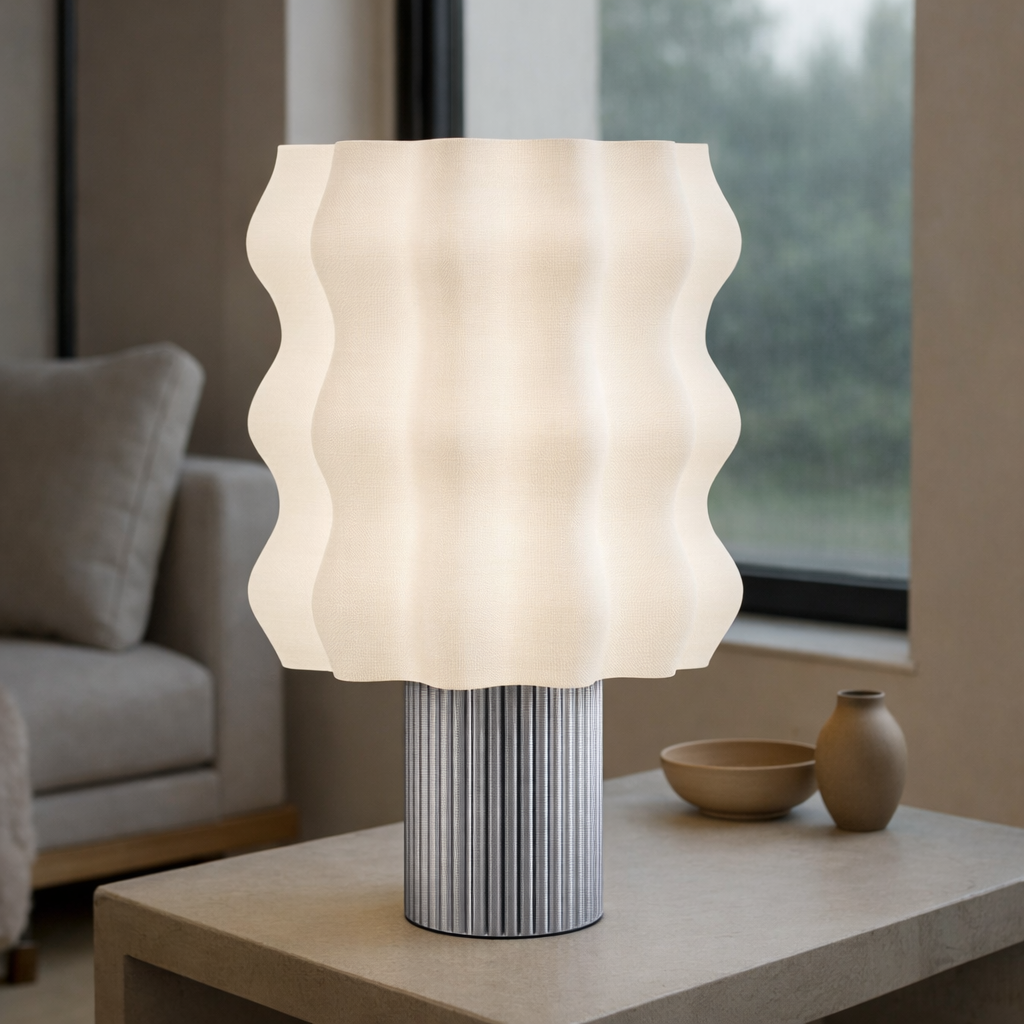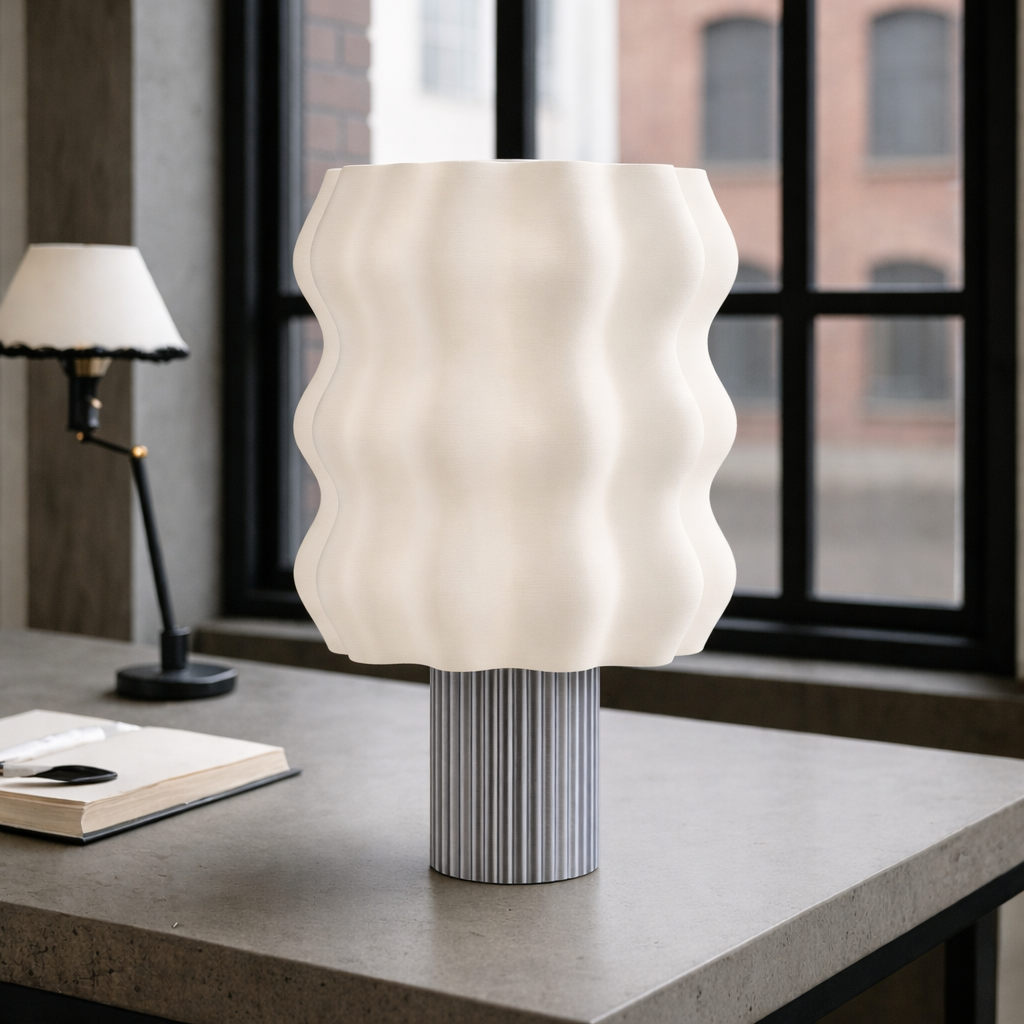 Materiale: plast (PLA+) Farge: Hvit skjerm, forskjellige bein lyskilde: E27 sokkel (med pære) størrelse: høyde: 320, bredde: 215mm ledning: 3,5 lang med eurokontakt bruksområde: innendørs montering: hvis trengs (enkel montering)