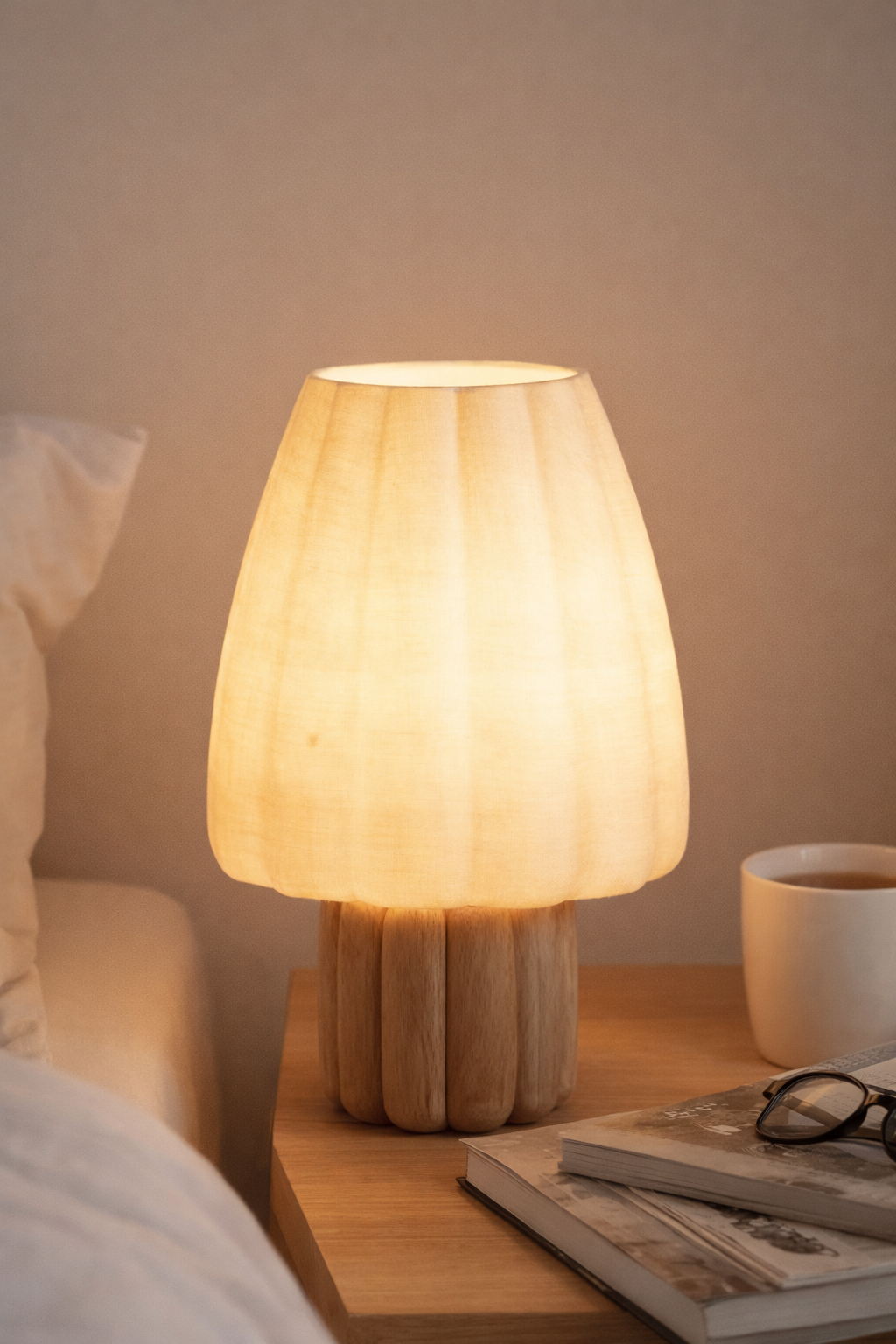 Solglimt bordlampe kombinerer funksjon og stil på en elegant måte. Den bølgeformede hvite skjermen sprer lyset jevnt, og gir en varm og behagelig atmosfære i rommet. Dette gjør lampen til en ideell nattbordslampe med E27 sokkel, som passer perfekt på soverom, sidebord, eller som stemningsbelysning i stuen.